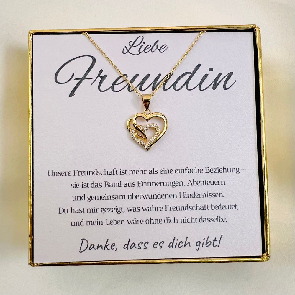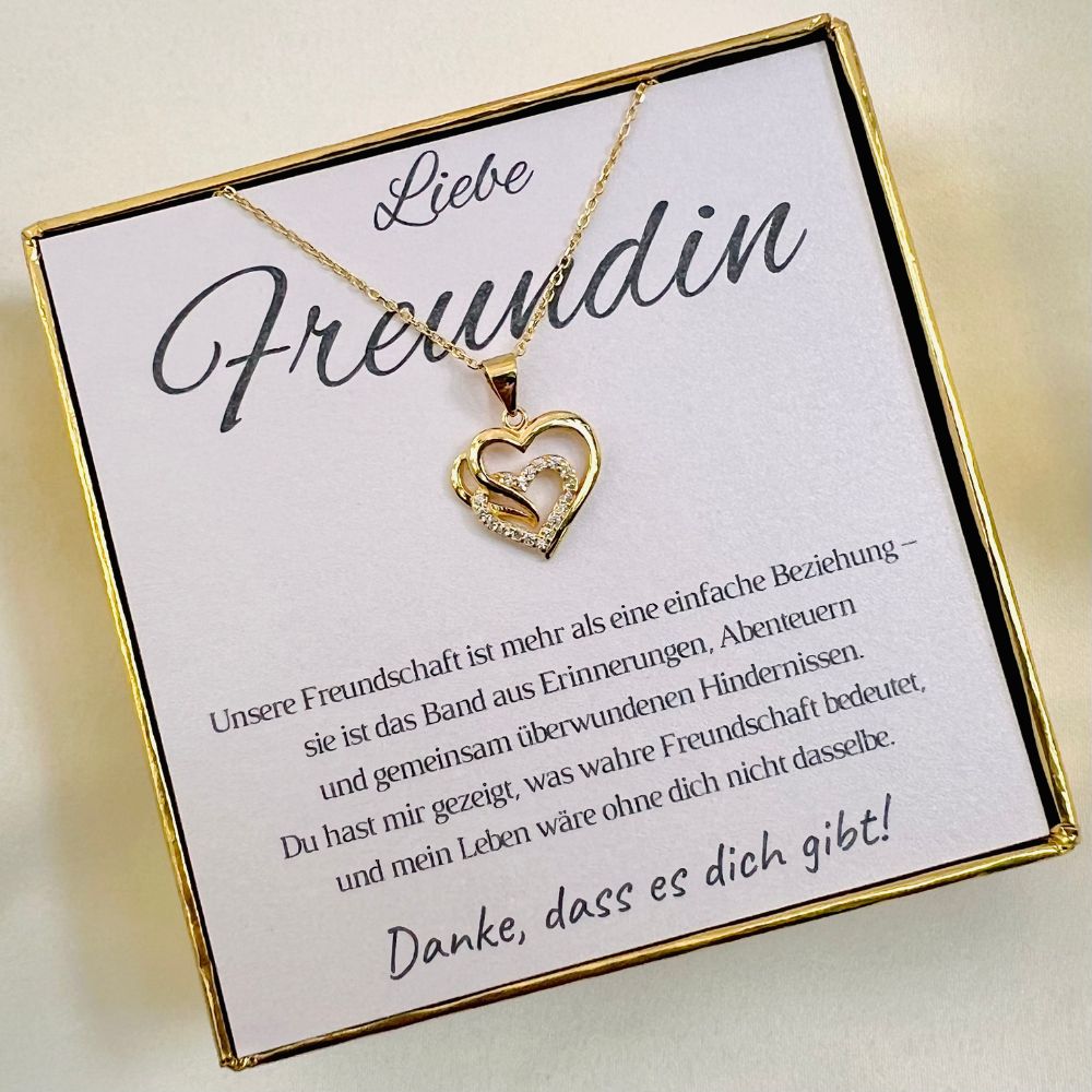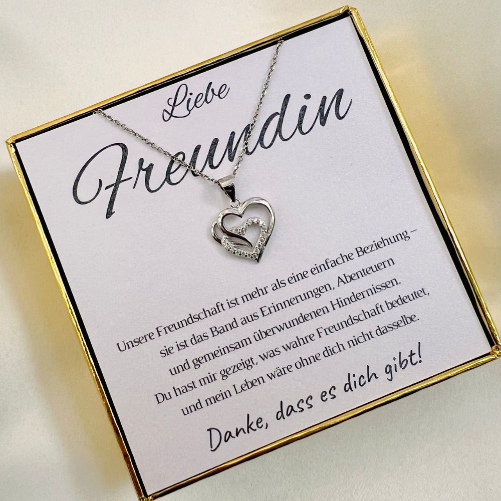 Ein Symbol wahrer Freundschaft – die Halskette „Zwei Herzen“ ist das perfekte Geschenk für deine beste Freundin, um eure besondere Verbundenheit zu feiern.